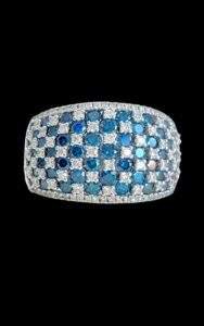 14kt WHite Gold Ladies Anniversary DIamond RIng With Blue & White Diamonds.