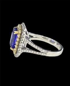 14kt White & Yellow Gold Ladies Emerald cut tanzanite & White Round cut Diamond Party wear Ring