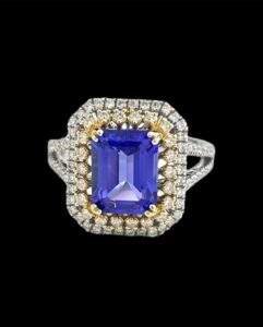 14kt White & Yellow Gold Ladies Emerald cut tanzanite & White Round cut Diamond Party wear Ring